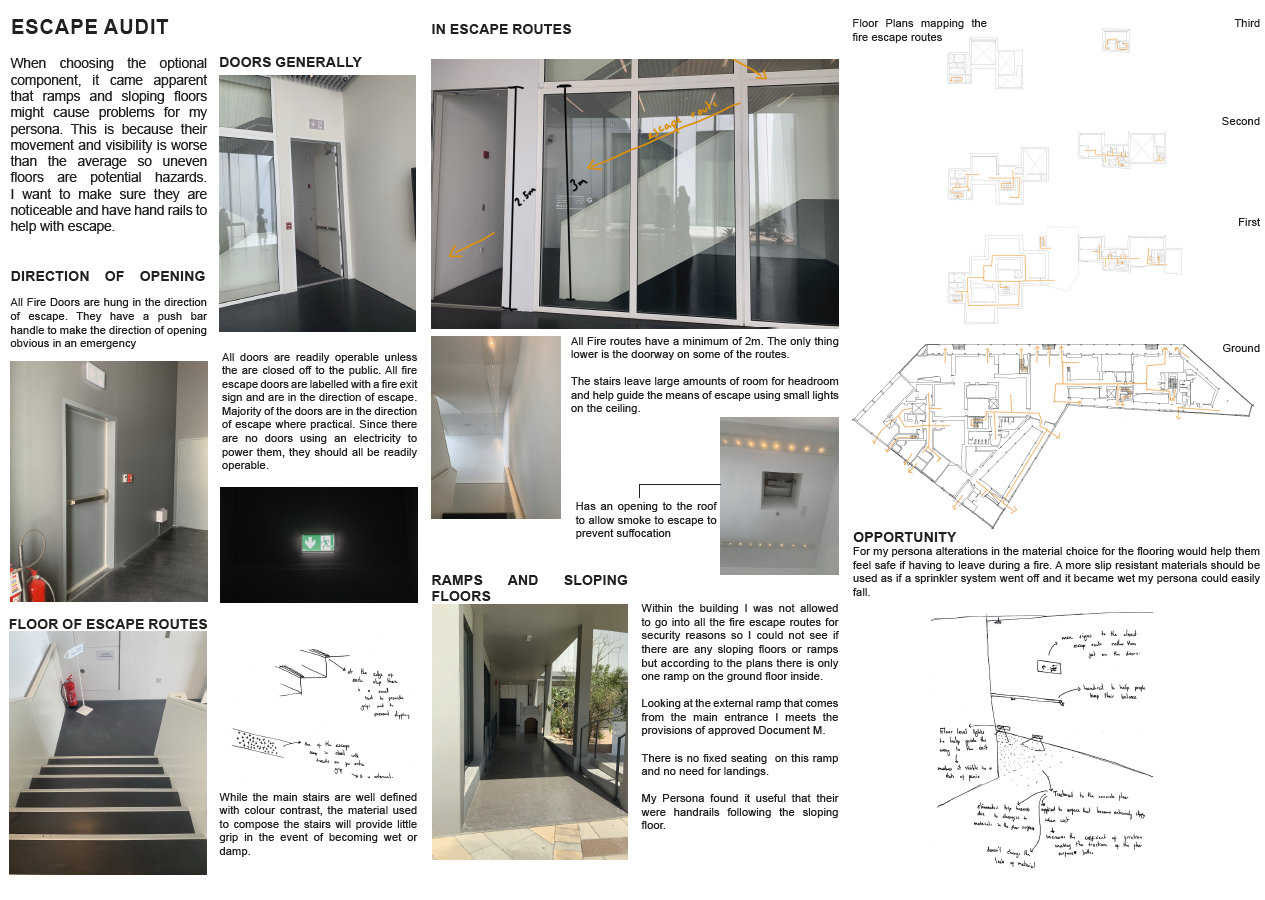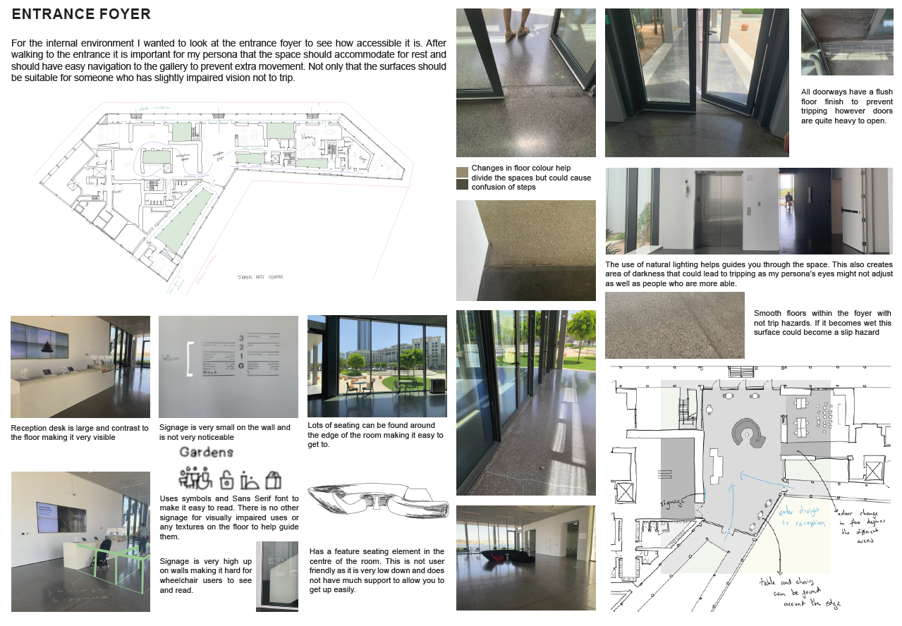 This audit was done within the Jameel Arts Centre in Dubai, to see how it could compare to the British regulations. Comparing the space to the regulations of Parts M and B helped create a better understanding of the documents and the opportunity in which architecture has to improve to create spaces that are accessible to all. Completing this audit within another country made me more aware of how accessibility is treated differently within the built environment and that even though there are regulations there is more that could be done. At the end of the audit, there was a chance to explore the ways the building could be improved to ensure user comfort and safety.
